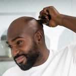 Trumpinkite ilgesnius plaukus iki šiurkščių, tada pasiekite lygiausią galvos skutimąsi.