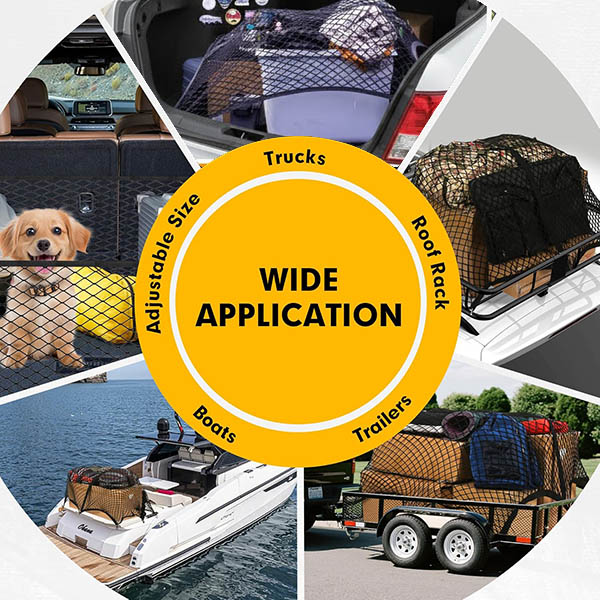 Idealiai tinka kasdieniam apsipirkimui, šeimos kelionėms, naminių gyvūnėlių reikmenims, įrankiams, stovyklavimo įrangai, sporto inventoriui, paplūdimio žaislams ar net palaidų daiktų organizavimui namuose. Vienas tinklas — begalė panaudojimo būdų. Tinka automobiliams, visureigiams, furgonams, priekaboms, stogo bagažinėms ir net valtims.
