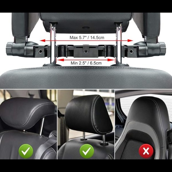 Suderinamumas: tinka automobilinėms sėdynėms su atskirais galvos atlošais ir 7-16 cm atstumu tarp atlošų. Netinka fiksuotiems galvos atlošams.