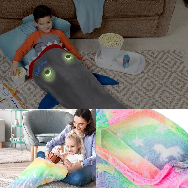 Minkštas, aukštos kokybės flanelinis flisas sušildo vaikus, kol jie atsipalaiduoja po pamokų ar užmiega nakčiai. Puikiai tinka prisiglausti ant sofos žiūrint animacinius filmukus arba sušilti šaltomis naktimis. Jūsų vaikai kikens iš džiaugsmo, kai susisups į ryklio arba undinės uodegą.