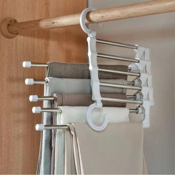 Daugiau nieko nelaukite! Pagerinkite savo spintos organizavimą ir sutaupykite vietos su šia išskirtine 5 pakopų kelnių pakaba.