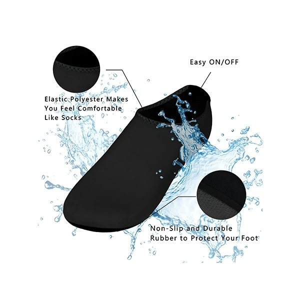 Daugiau jokių sušlapusių batų. Mėgaukitės itin lengvos ir greitai džiūstančios medžiagos komfortu. Šios vandens kojinės greitai džiūsta, todėl lengvai pereisite iš vandens į sausumą. Lankstus dizainas prisitaiko prie jūsų pėdų, užtikrindamas patogumą ir prigludimą.
