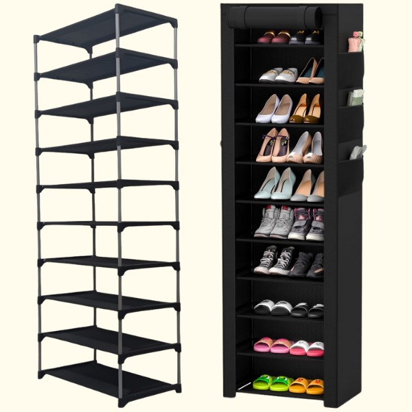 Nešiojama ir sulankstoma batų lentyna turi 10 reguliuojamų lentynų. Leidžia laikyti iki 20 porų batų, išlaikant jūsų kolekciją tvarkingą ir lengvai pasiekiamą. | OMARA