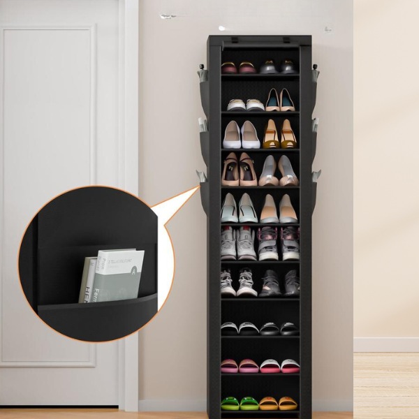 Įrengtas audinio uždangalas, atsparus dulkėms, su užtrauktuku. Ši batų lentyna užtikrina, kad jūsų batai išliktų švarūs, apsaugoti nuo dulkių ir purvo.